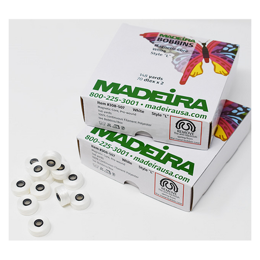 No reviews$51.27 $51.27| /Madeira Sideless Magnetic Core pre-wound machine embroidery bobbins are sure to be the new favorite in embroidery shops. These magnetized, L-style...